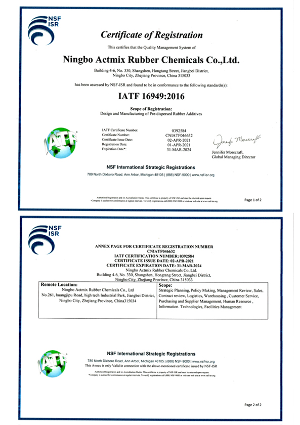 Ningbo Actmix has passed the IATF16949, ISO14001 and OHSAS18001 management system certification.