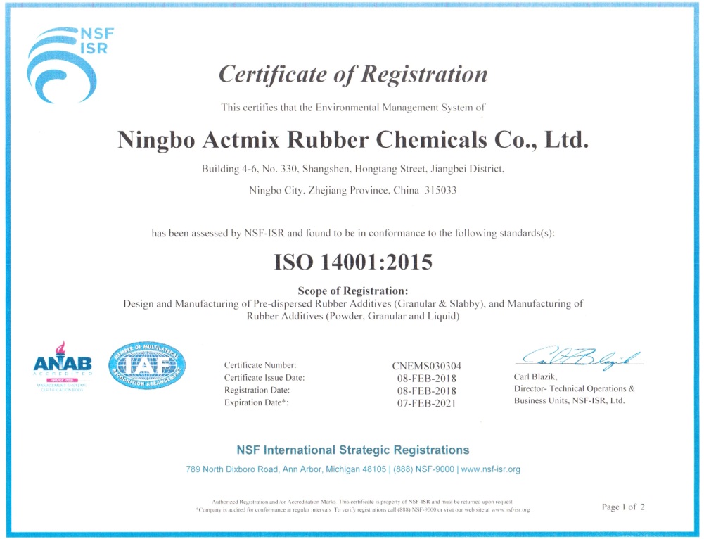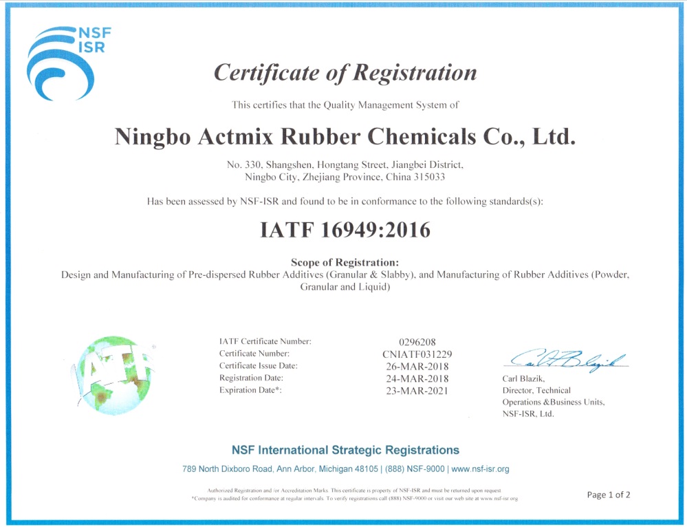 Ningbo Actmix já ganjou as certificações do Sistema de Gerência de IATF16949, ISO14001 e OHSAS18001.