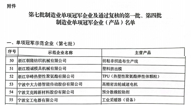 根据《制造业单项冠军企业培育提升专项行动实施方案》(工信部产业 [2016] 105号) 和《工业和信息化部办公厅 中国工业经济联合会关于开展 2022 年制造业单项冠军企业 (产品)培育迷选和复核评价工作的通知》(工信厅联政法函 [2022] 47号),经企业申报、地方主管部门与中央企业推荐、行业协会限定性条件论证、专家论证及社会公示等程序,确定了第七批制造业单项冠军企业 (产品) 名单和通过复核的第一批、第四批制造业单项冠军企业 (产品) 名单,现予以公布。